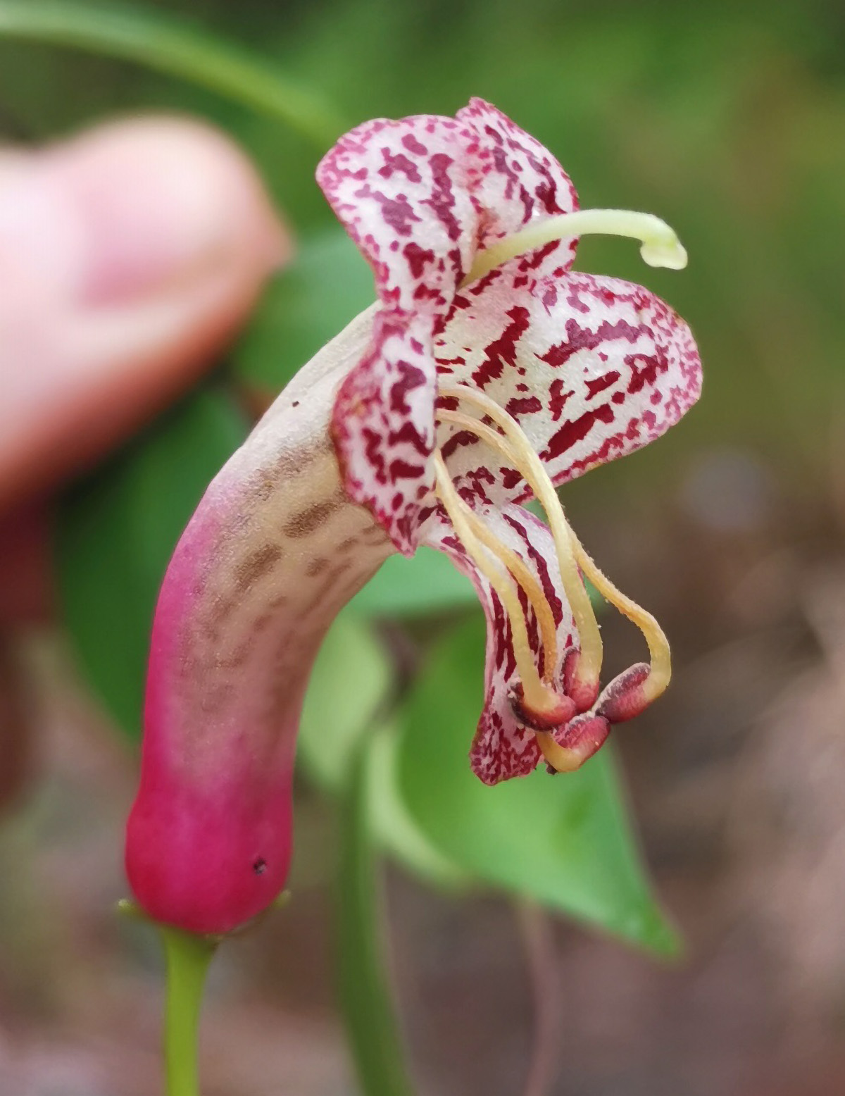 Examining the material they collected from the trips, botanists Jayson Mansibang, Adriane Tobias, Pastor Malabrigo Jr (University of the Philippines Los Baños), and Dr. Chris Thorogood (Deputy Director and Head of Science for Oxford Botanic Garden and Arboretum and lecturer at Oxford University’s Department of Biology) realized they had stumbled upon a specimen unlike any related type of lipstick vine known to date. In particular, the plant’s flowers have a distinct pattern of delicate purple mottling, similar to that of a European foxglove.