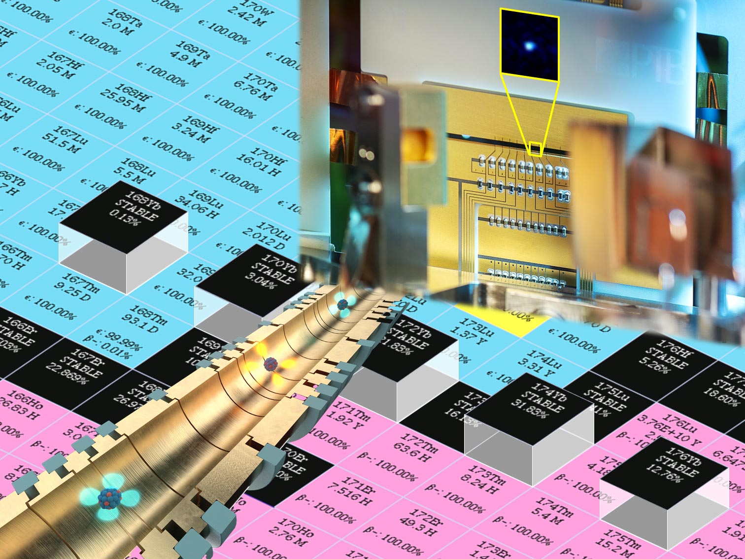 Driven by this question, Tanja Mehlstäubler from PTB in Braunschweig and Klaus Blaum from MPIK in Heidelberg set out to investigate the ytterbium isotope shifts. Their research teams carried out high-precision measurements of atomic transition frequencies and isotope mass ratios of ytterbium isotopes. Linear high-frequency ion traps and ultra-stable laser systems were used for optical spectroscopy at PTB.