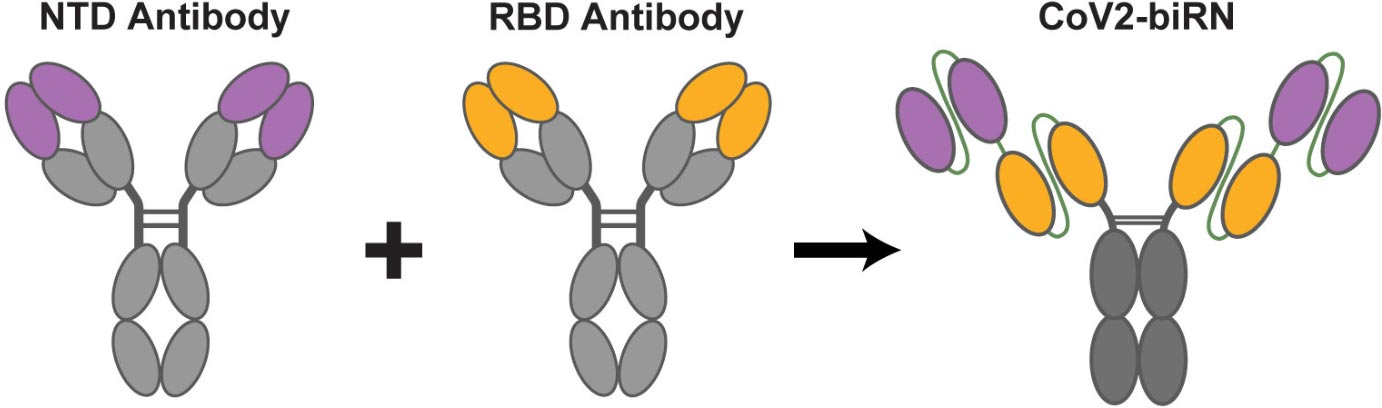 The researchers designed a series of these dual or “bispecific” antibodies, called CoV2-biRN, and in laboratory tests they showed high neutralization of all the variants of SARS-CoV-2 known to cause illness in humans. The antibodies also significantly reduced the viral load in the lungs of mice exposed to one version of the omicron variant.