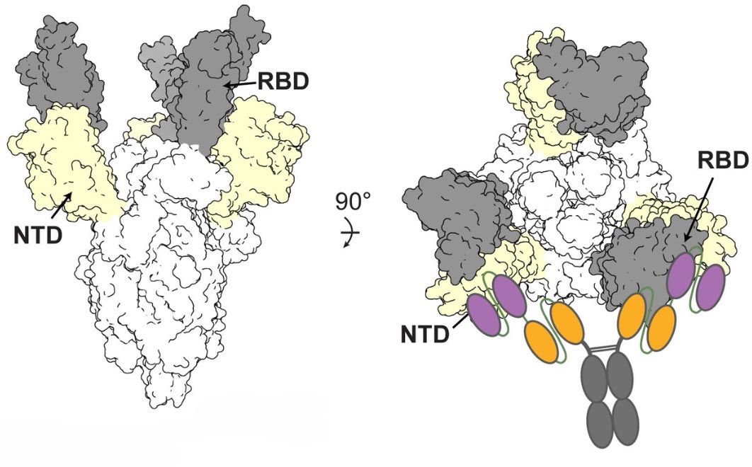 This area, within the Spike N-terminal domain, or NTD, had been overlooked because it was not directly useful for treatment. However, when a specific antibody attaches to this area, it remains stuck to the virus. This is useful when designing new therapies that enable another type of antibody to get a foothold and attach to the receptor-binding domain, or RBD, of the virus, essentially blocking the virus from binding to receptors in human cells.