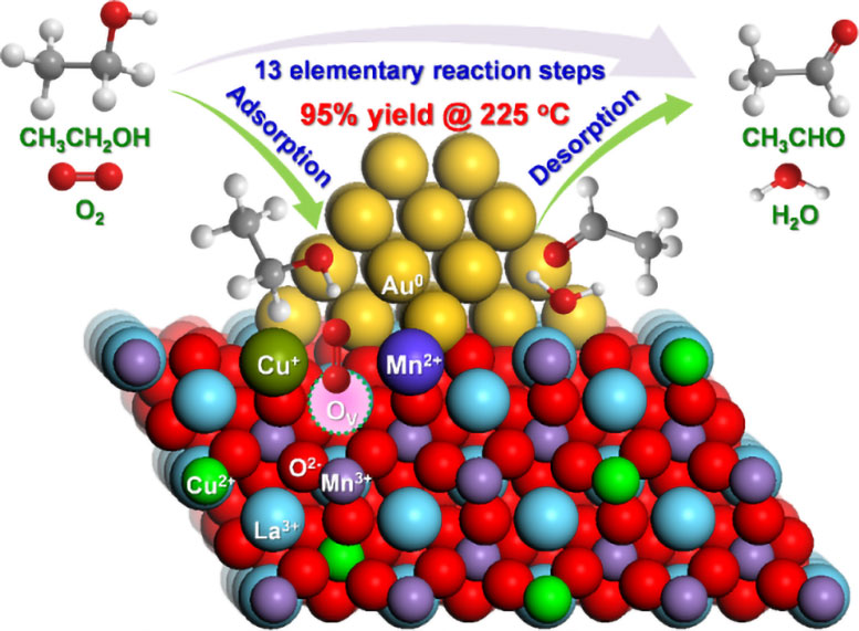 A new gold-perovskite catalyst achieves record-high acetaldehyde yields from bioethanol at lower temperatures.
