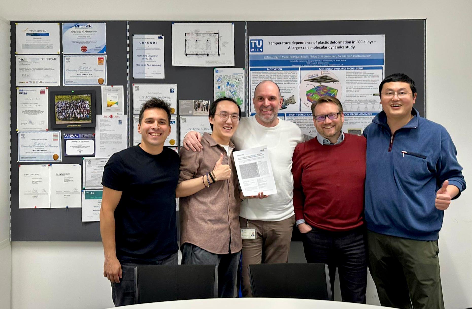 Finding the right lubricant for each application is crucial in many industries. Lubricants help reduce friction, prevent overheating, minimize wear, and improve energy efficiency. At TU Wien, a team of researchers — including Prof. Carsten Gachot (Tribology, Mechanical Engineering) and Prof. Dominik Eder (Chemistry), along with guest researcher Xudong Sui — is working to develop advanced, more effective lubricants.