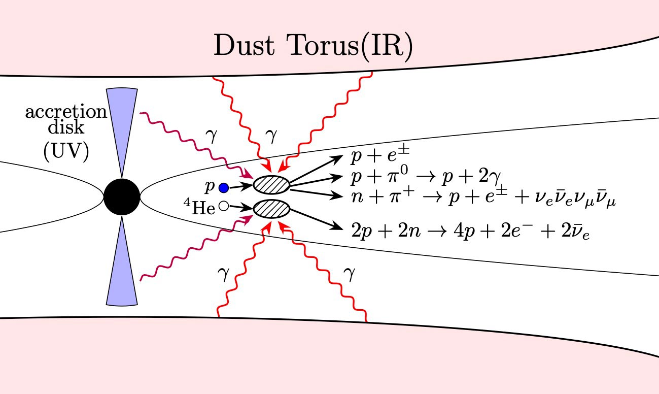 The new paper proposes that if a helium nucleus accelerates in the jet of a supermassive black hole, it crashes into photons and breaks apart, spilling its two protons and two neutrons into space. The protons can fly away, but the neutrons are unstable and fall apart, or decay, into neutrinos, without producing gamma rays.